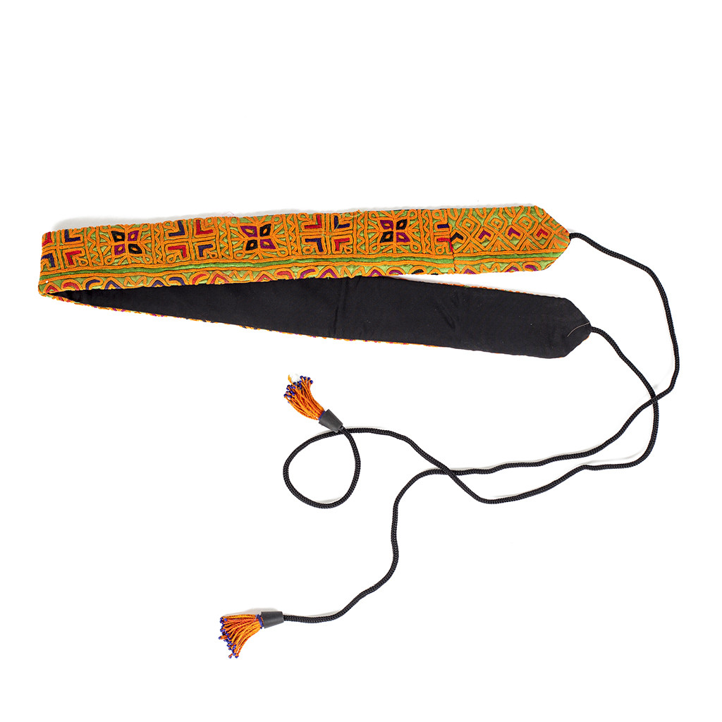 Hand-embroidered vintage belts are finished with an of-the-moment tassel tie and come in an array of beautiful colours and patterns. Each design is unique making each belt one-of-a-kind.