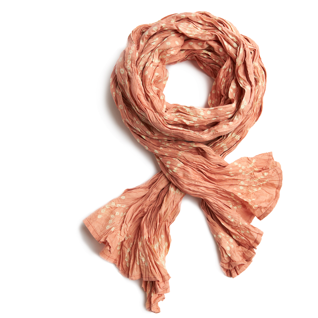 Handmade using 100% Pakistani cotton, this patterned scarf in shades of blush has been hand-dyed to give it a unique finish. It is extremely lightweight and great for traveling.